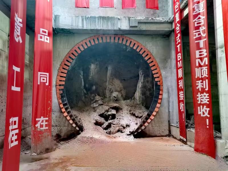 瓦茶區間為單洞雙線隧道,左線長約1.7km,最大坡度36‰,隧道頂部最大埋深約32m,系該工程首條長距離、大坡度盾構隧道。掘進路線主要穿越回填土區,隧道上方范圍內有多個U型回填土層集水凹槽,地下水豐富,水壓較高,地質條件復雜,掘進過程中易造成管片上浮、錯臺、滲漏水、掘進效率低等問題。盾構施工過程采用了特殊調配添加劑的預拌砂漿、在富水區開孔泄水時采用雙液漿封水環和二次補注漿等技術措施,確保了施工質量,實現了TBM勻速穩步掘進。同時借助先進的電子監測設備和智慧工地管理系統,實現全施工過程信息化監測,切實保障施工過程安全。市建科院檢測中心作為該工程的第三方檢測方,在盾構施工過程中,積極組織人員,全力配合項目進度,及時開展相關料原材料等檢測工作,及時出具檢測報告,確保各項檢測參數滿足設計及規范要求。