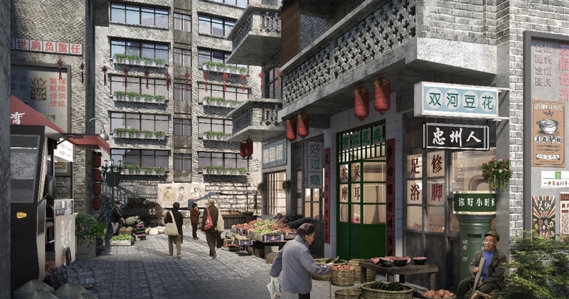 市建科院設計團隊對小區進行全面的走訪和調查研究,大量挖掘當地文化脈絡,了解當地居民的需求與問題,充分聽取和尊重居民的意見和建議,在此基礎上定制出一套科學、合理的改造設計方案,確保改造設計能夠體現居民的合理意愿,最大限度增強居民的獲得感和幸福感。設計改造以整體保護與復興老街為前提,圍繞“一帶”(忠州老街文化休閑帶)、“一廊”(漢闕廣場藝術景觀廊)、“一心”(老城區人文生活中心)的設計策略,從市政配套、外部環境、建筑問題、公共樓梯、功能構建、專項等六大類多方面對老舊小區進行改造提升,打造老街集市空間、資產改造空間,新增停車區、休閑空間、公園等,旨在保留文化遺存、還原文化空間和業態、再現老城原生態生活場景與人文氛圍。