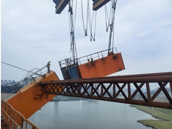 潼南東升大橋完成首節(jié)鋼箱拱吊裝
