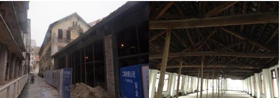 貳廠老舊廠房存在結構體系復雜、型式多樣、整體性差、安全儲備低、加固增建并存等歷史問題,市建科院技術團隊以解決工程中的實際難題為出發點,邊研究、邊設計,創新性提出了廠房間增設連廊加固改造技術、增設鋼結構夾層技術、增設陽臺技術、增設鋼管混凝土消防樓梯技術、木屋架落架改造技術等,諸多技術已推廣應用至其他項目。