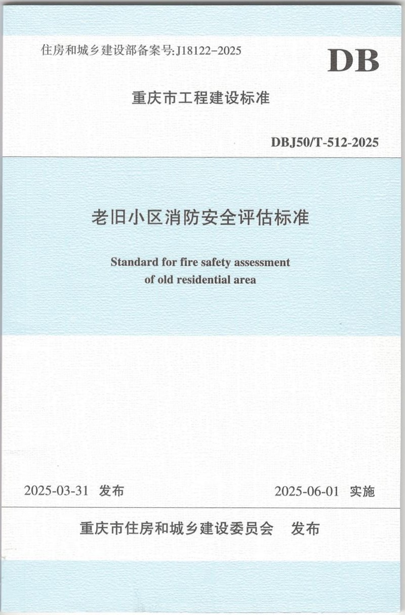 近日,由重慶設(shè)計集團(tuán)下屬子企業(yè)重慶市建筑科學(xué)研究院有限公司(以下簡稱"市建科院")牽頭編制的重慶市工程建設(shè)標(biāo)準(zhǔn)《老舊小區(qū)消防安全評估標(biāo)準(zhǔn)》(DBJ50/T-512-2025)通過重慶市住房和城鄉(xiāng)建設(shè)委員會審批正式發(fā)布,將于2025年6月1日起開始實施。