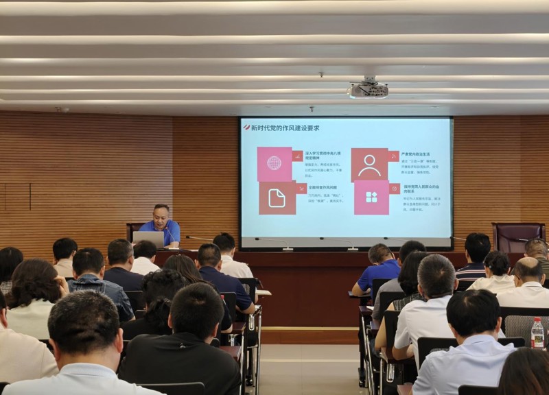 為推動深入貫徹中央八項規定精神學習教育走深走實,進一步強化黨員干部紀律意識、筑牢作風根基,6月27日,在慶祝中國共產黨成立104周年之際,重慶設計集團所屬子企業重慶市建科院黨委書記、董事長譚曉江同志以《鍥而不舍落實中央八項規定精神 持之以恒推進作風建設縱深發展》為題講授專題黨課。公司在家黨委班子成員、中層管理人員、黨支部書記、紀委委員等共計80余人參加。