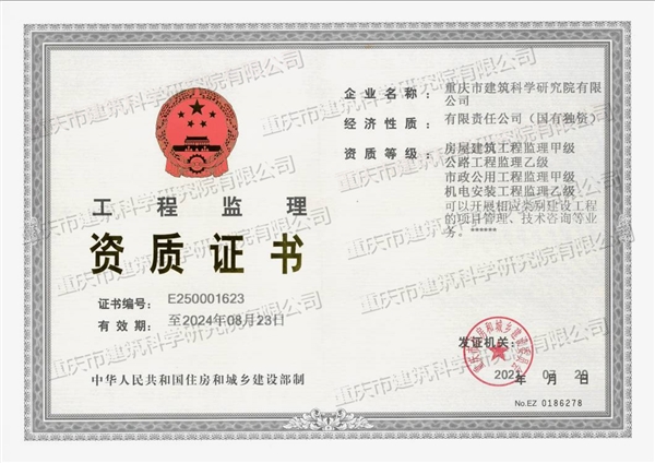 工程監理資質證書(甲級)