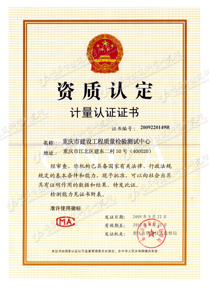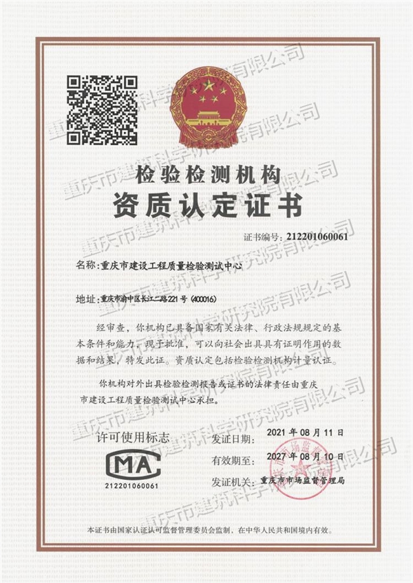 檢驗檢測機構資質認定證書