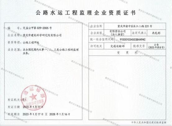 公路水運工程監理企業資質證書
