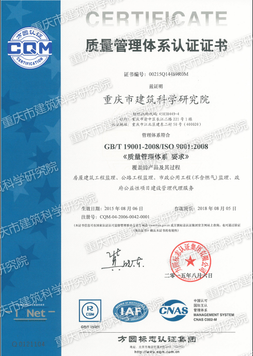 質量管理體系認證證書
